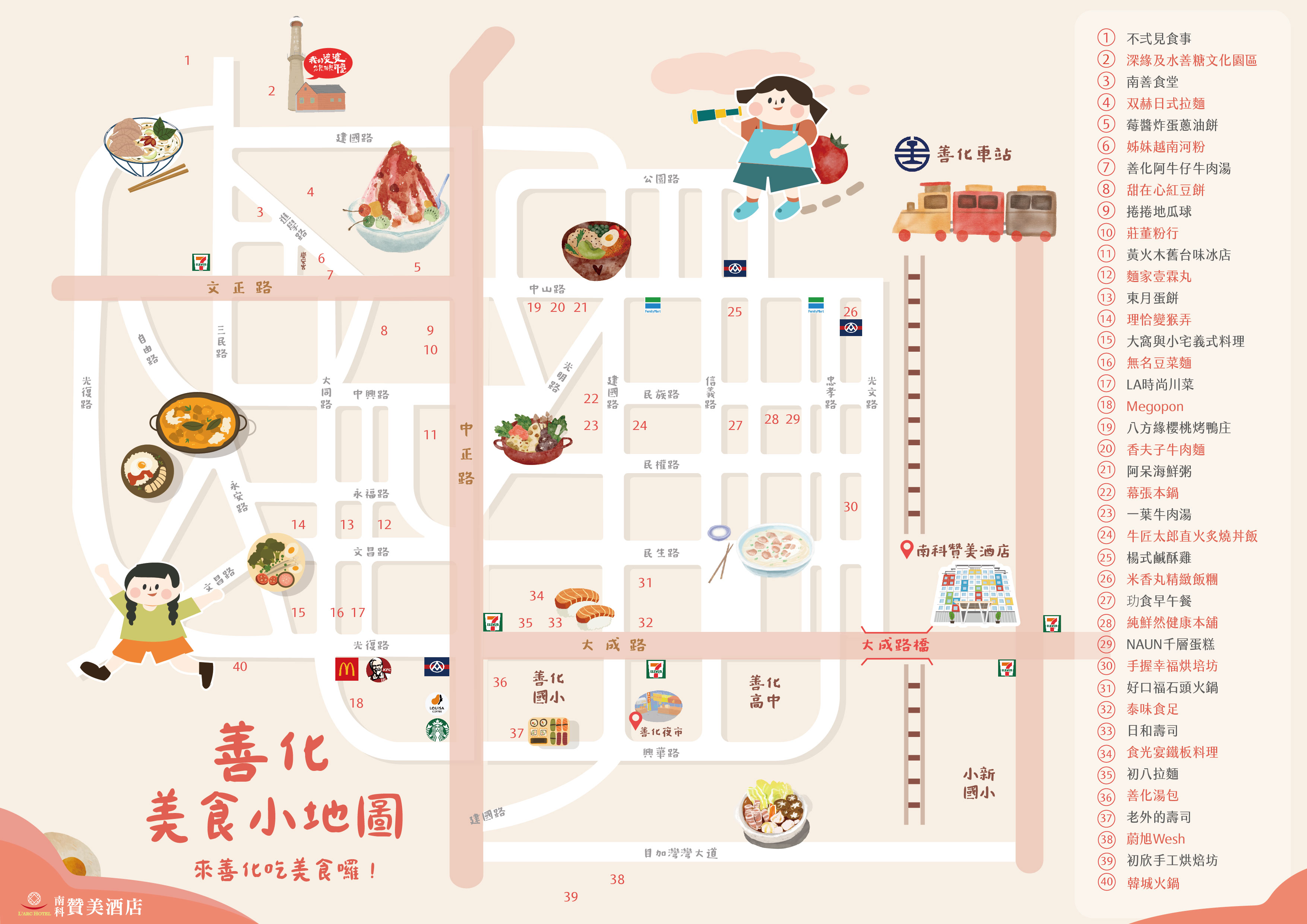贊美酒店自製【善化美食小地圖】,帶你吃遍善化無敵美食!一起來趟美食之旅吧!