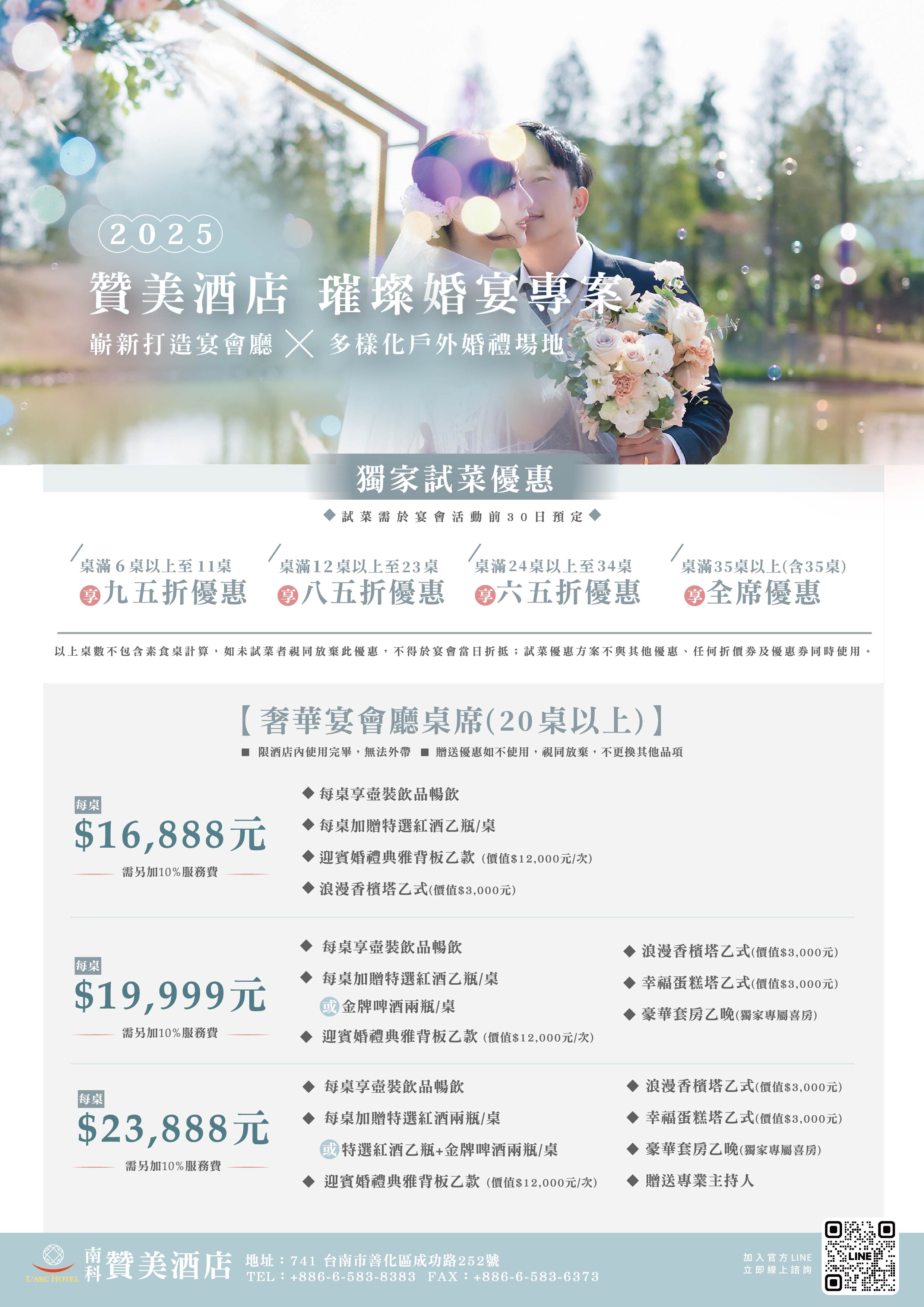 有任何需求,歡迎與我們聯繫!(06)583-8383 轉 酒店訂席部
