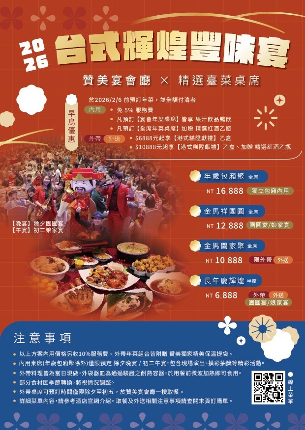 【餐飲優惠】2026「贊美宴會廳」春節團圓年菜